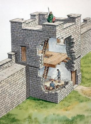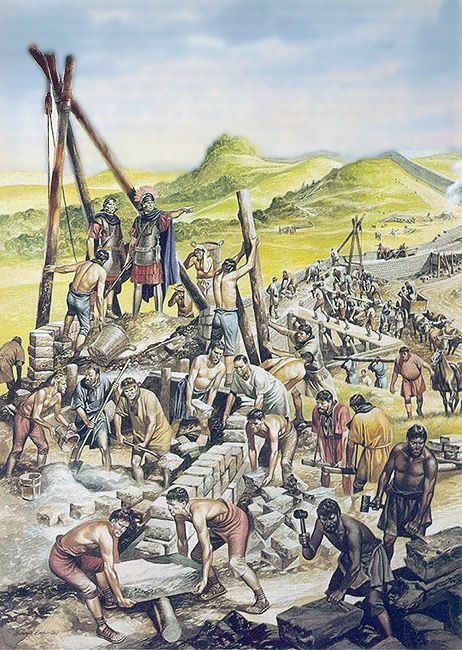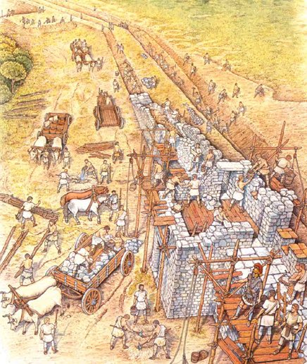 3. y 16 fortalezas más grandes con puertas en la cara norte, que contenían de 500 a 1000 soldados. Además al sur de la muralla y en paralelo a la misma, como protección, tenía una amplia zanja defensiva “vallum” de 6 m. El muro fue el limes norte del Imperio durante siglos. ⤵️