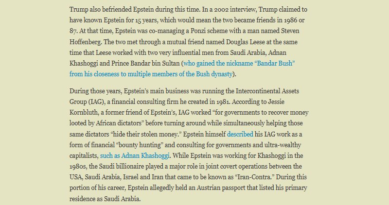 This+Epstein's ties to the Maxwells puts him in the middle of Iran-Contra. Rupert Murdoch, who befriended Trump in the same era as Epstein via Roy Cohn, was contracted by the CIA to produce propaganda for Iran-Contra operations. This was a precursor to Fox News