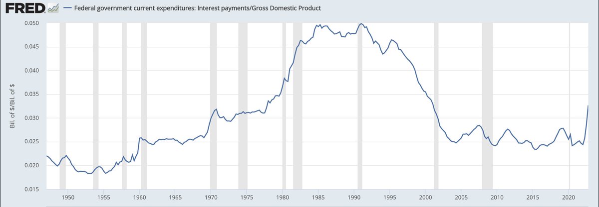 A 2.5% Increase of Interest as a percent of nGDP takes us to the historic high of the 80's. But again assumes GDP doesn't grow
