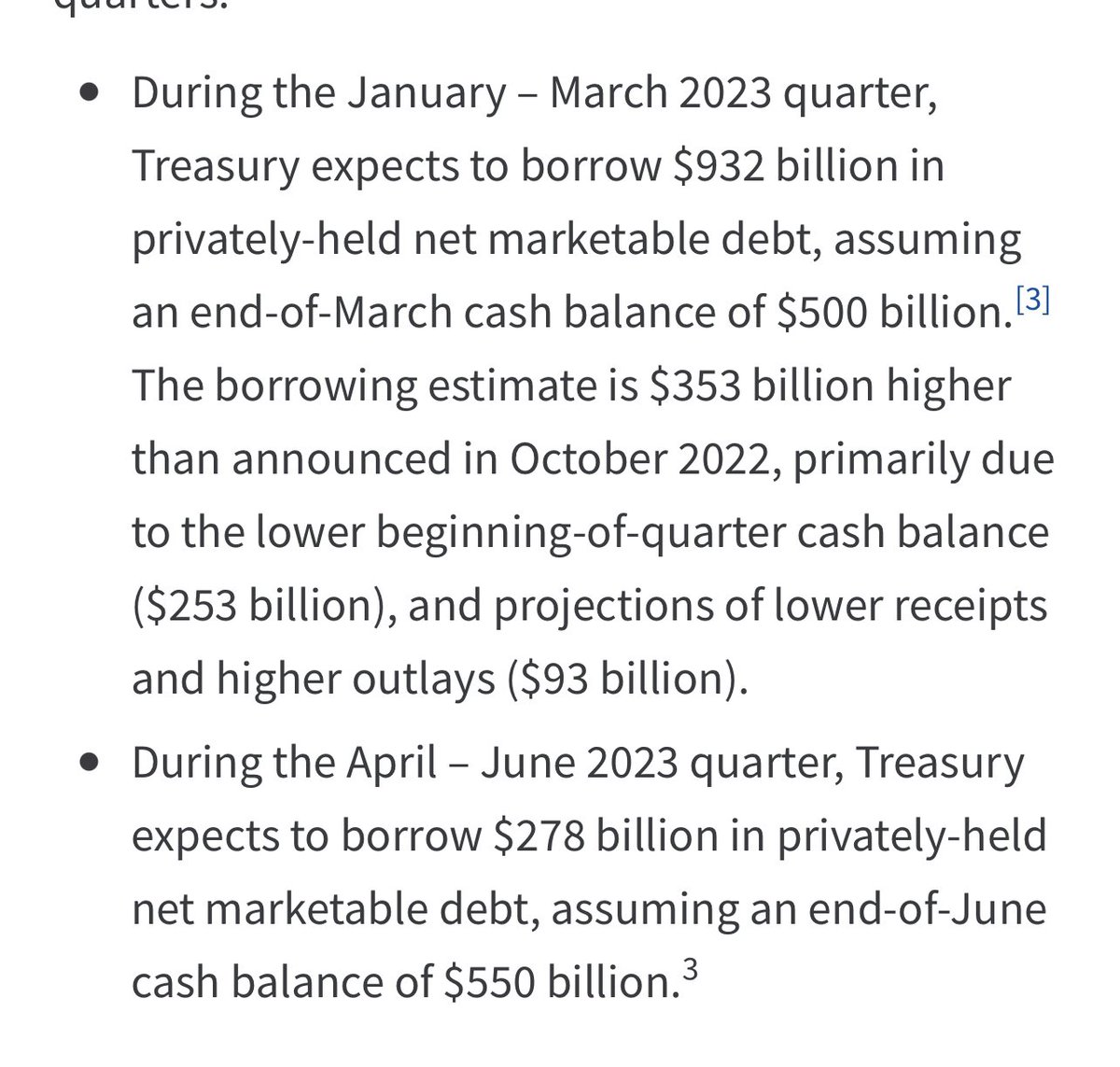 Notice the plan to issue 932BN in January (which has passed) and the next two months which is coming. Notice that is 353BN MORE than planned. also notice the very low TGA on December 31st of 253BN less than planned at 447BN vs 700 Plan and the current level spot on Q1 plan