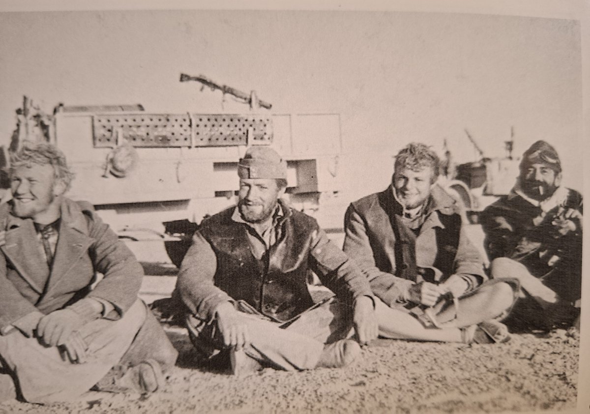2/ Stirling & Mayne, with Johnny Cooper & Reg Seekings (pic, l-r 2 & 4th), Jimmy Storie, Bob Lilley & Kahane, were in a truck heading to raid Benina in Libya.