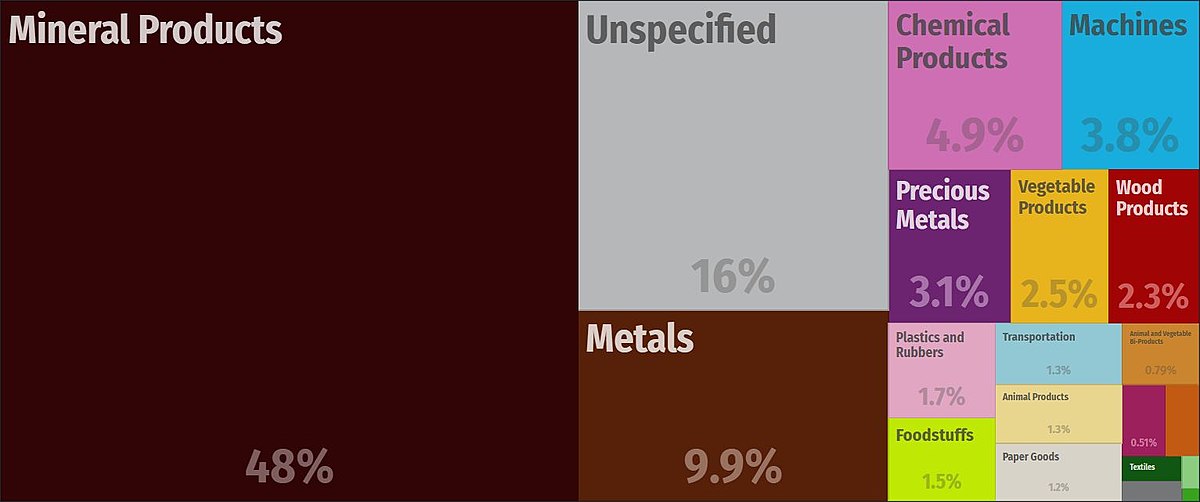 2/Na wstępie skąd Rosja bierze pieniądze? Poniżej wklejam tabelkę, która pokazuje jak rozkładają się procentowo zyski z eksportu rosyjskich dóbr. Dla niewtajemniczonych im większy kwadracik, tym oczywiście więcej Rosja zarabia w tym sektorze.