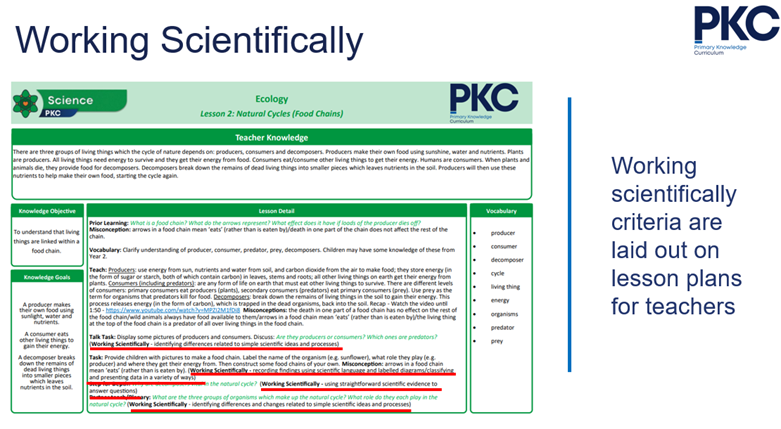 ‘Ensure that the curriculum identifies and sequences the disciplinary knowledge that pupils need to work scientifically’