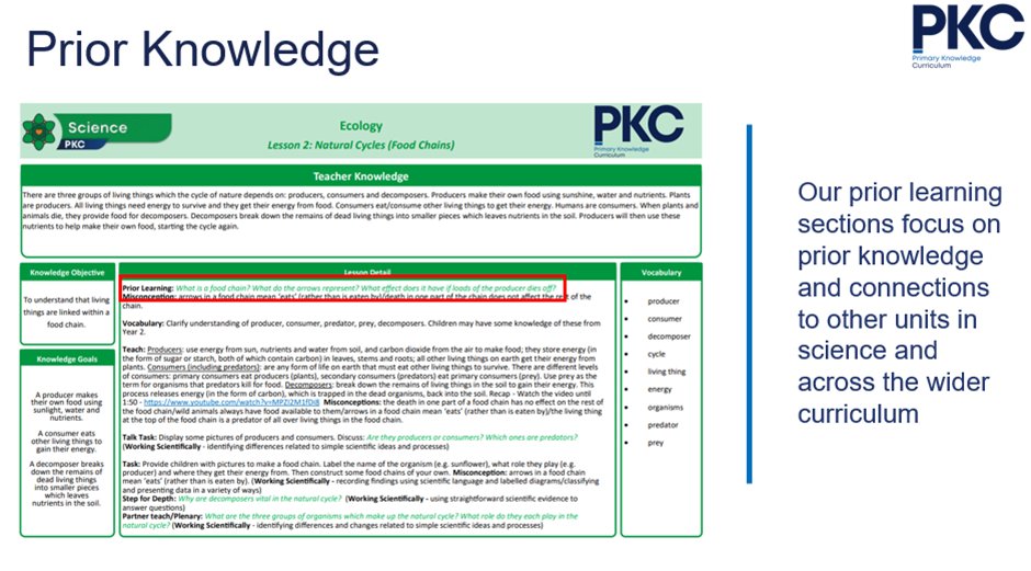 Each lesson connects to relevant prior knowledge from within the science curriculum and other subjects