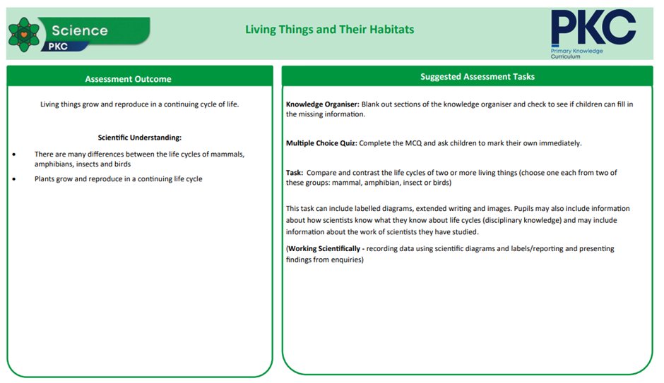 ‘This knowledge should connect with what pupils go on to learn in Y1 science’