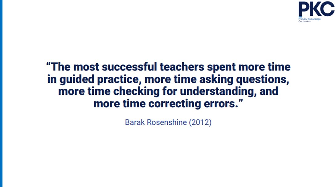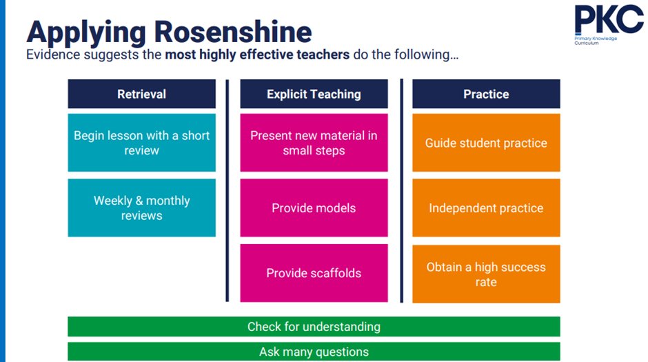 When applying Rosenshine’s Principles, checking for understanding and asking many questions are the threads that feed through every other principle. We know that expert teachers not only ask more questions, but they check for understanding on more occasions too.
