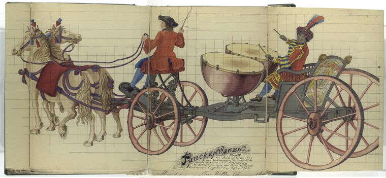 It appears that Frederick William I and Frederick II ("the Great") of Prussia maintained a Paukenwagen or a mobile drum platform, for their artillery. You can see a Dutch example of this type of carriage from the era of William III below. 14/25