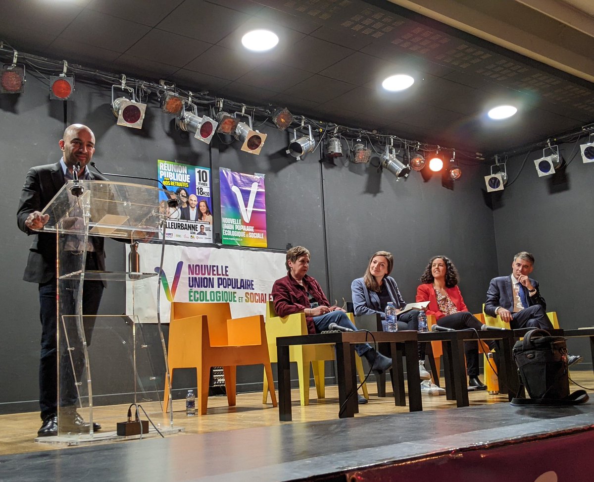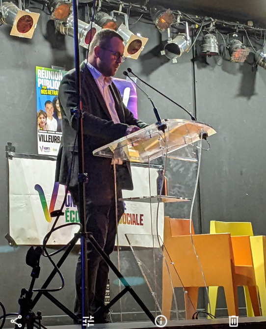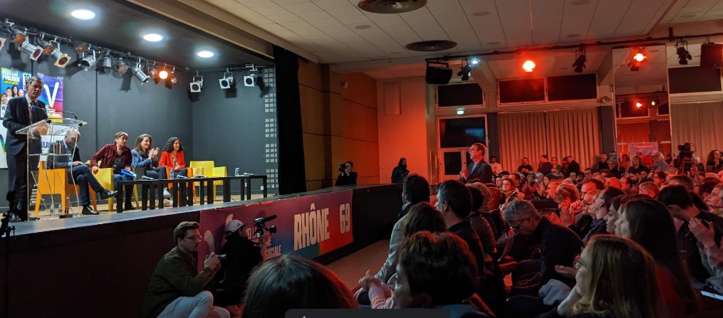 Le maire de Villeubanne @cvansty introduit la soirée et rappelle la longue tradition de gauche de la ville. "Nous ressentons de dire l'avenir que nous voulons, et celui que nous ne voulons pas".