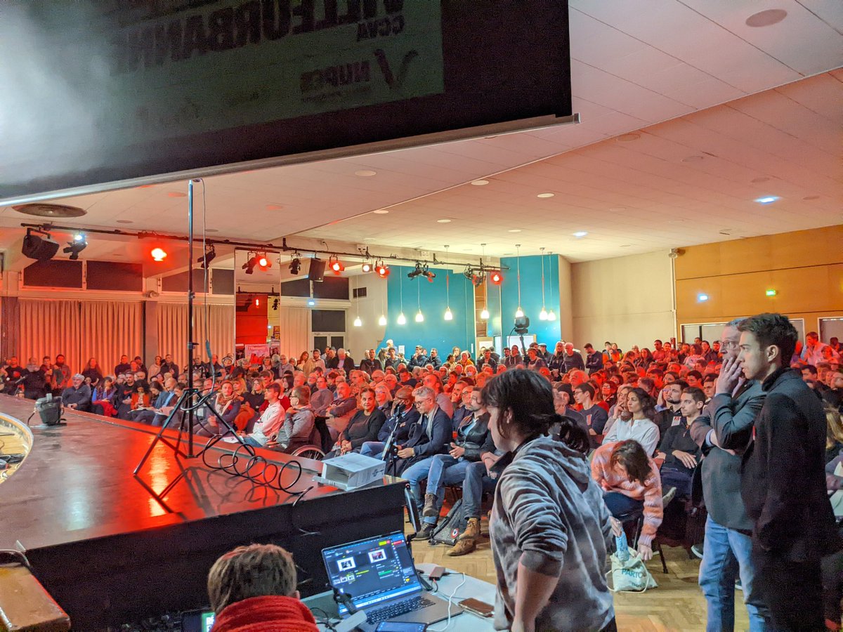 Salle bien remplie, au moins 500 personnes, en estimation grosse maille.