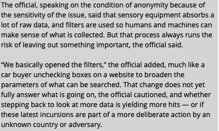 Washington Post reporting that this was indeed part of the case, they literally hadn't dropped the speed gate filters on the radars. If this is true, it tells you how in tune/asleep at the wheel with this threat the DoD has been, as well as the UAP thing in general.