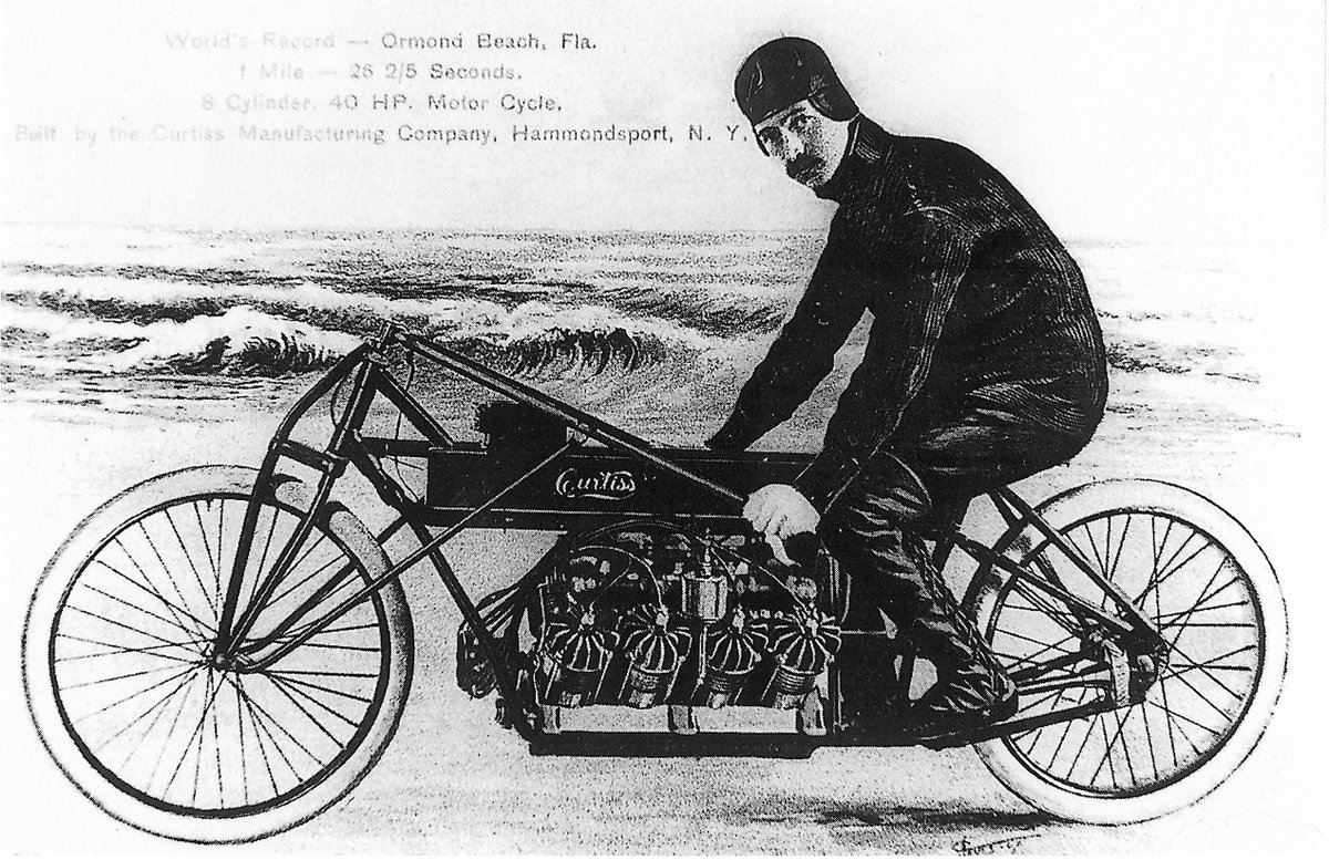 Bicycles were the new rage, but Curtiss felt the need for even more speed. He designed his own light-weight engines to attach to his bicycles to turn them into motorcycles. In 1907, he set the land speed record of 136 mph on a beach in Florida.
