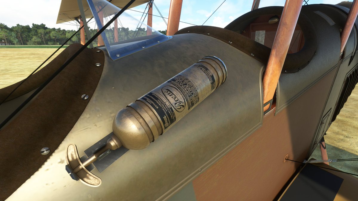 Just outside the cockpit, an arm's length away, is a fire extinguisher.