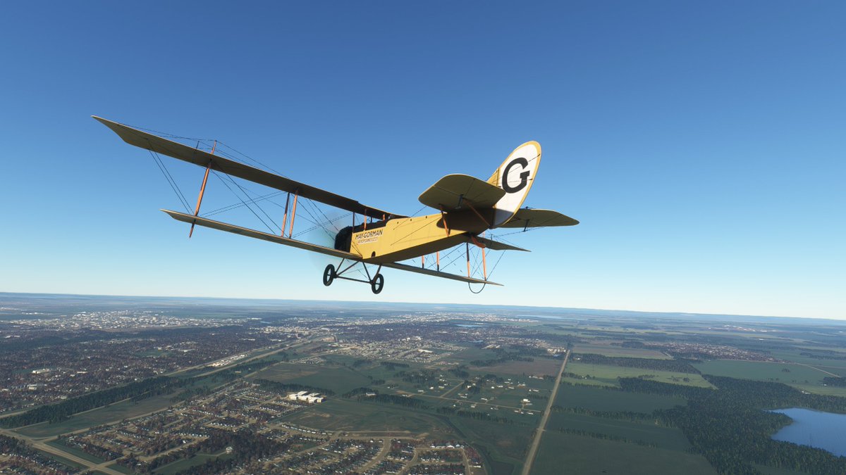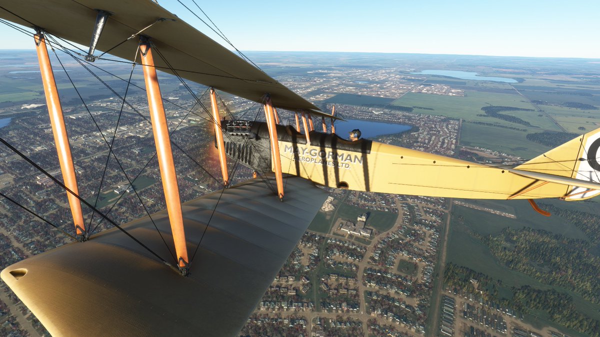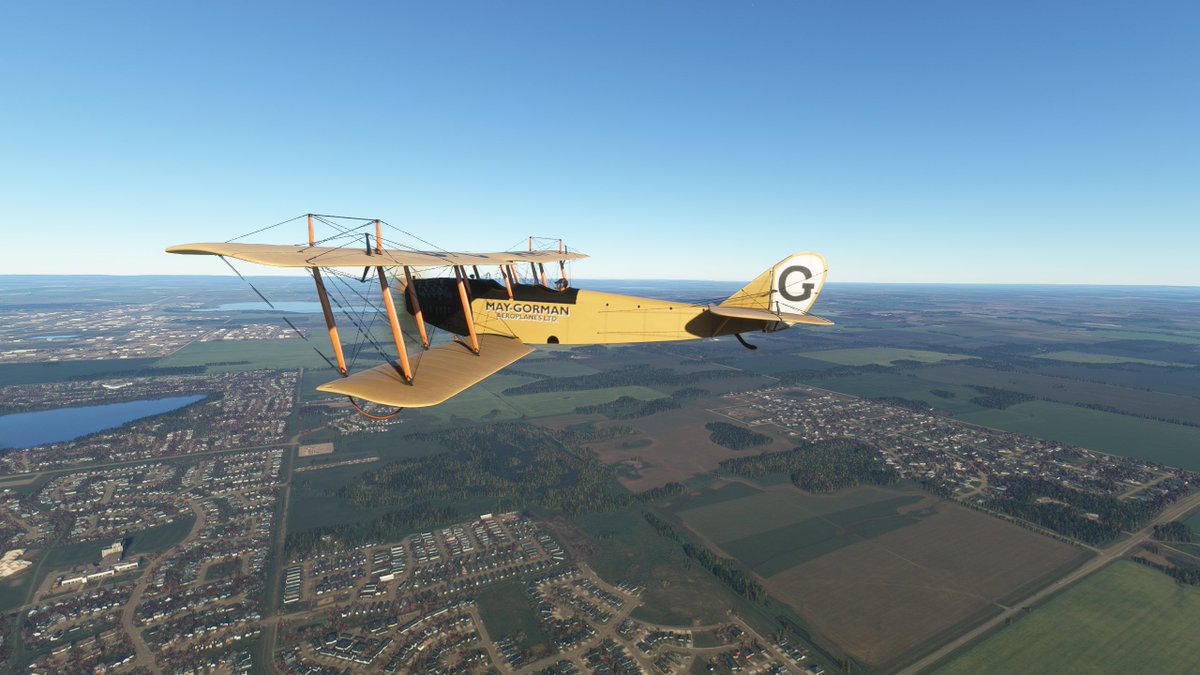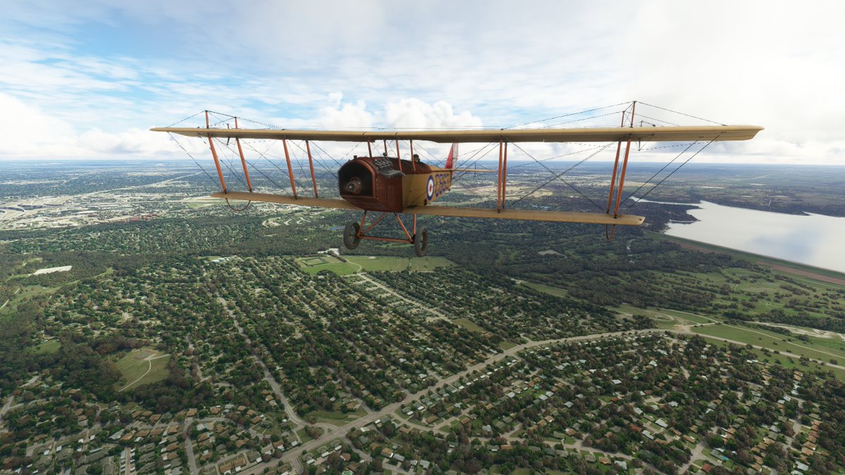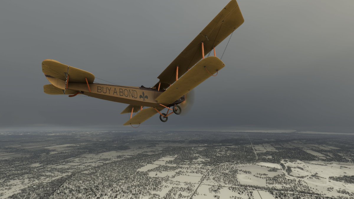 This JN-4 Canuck flew out of Bembrook Field. Like the other two, this airfields no longer exists, so I'm flying over the suburban residential area where it was once located.