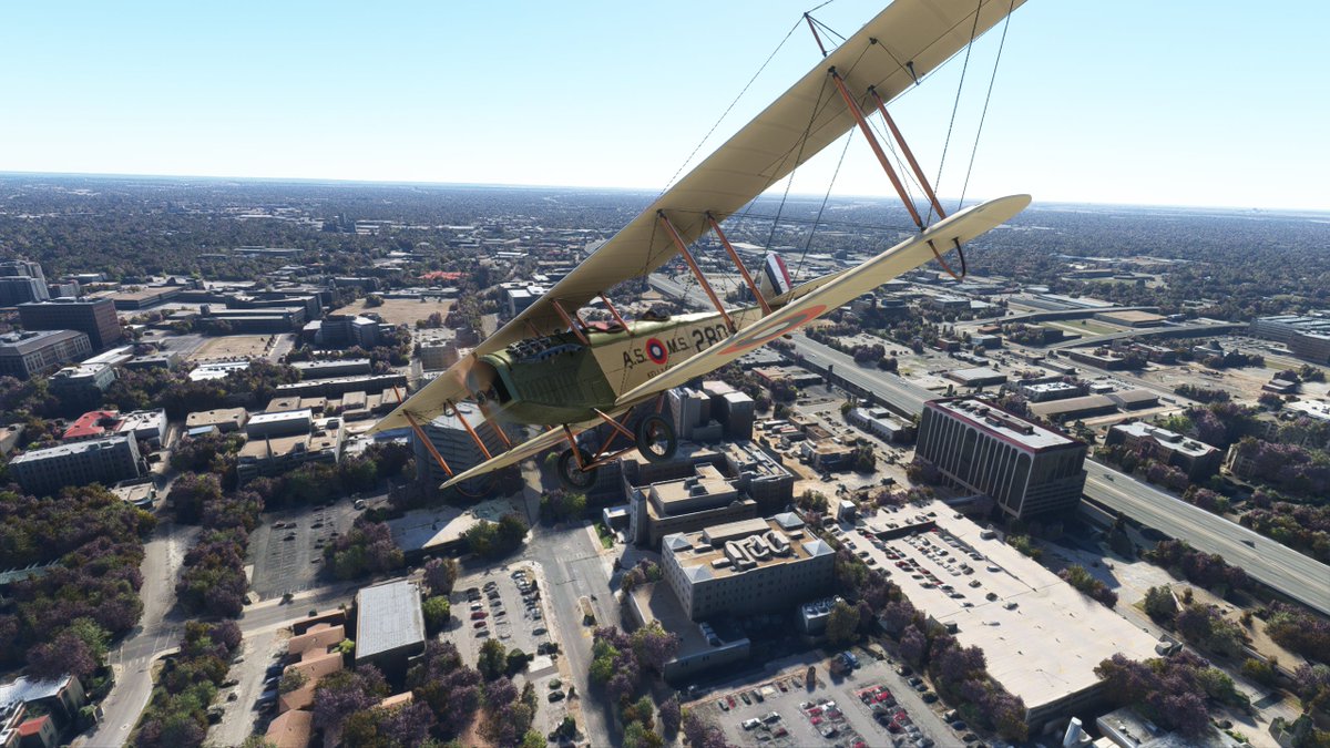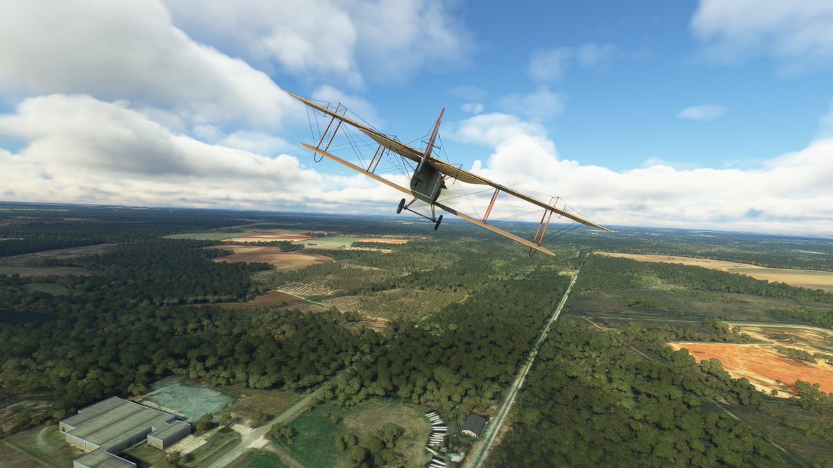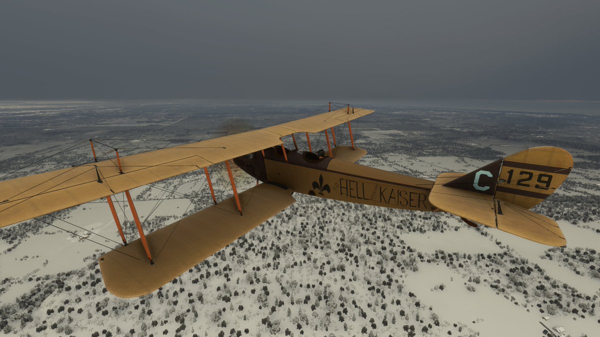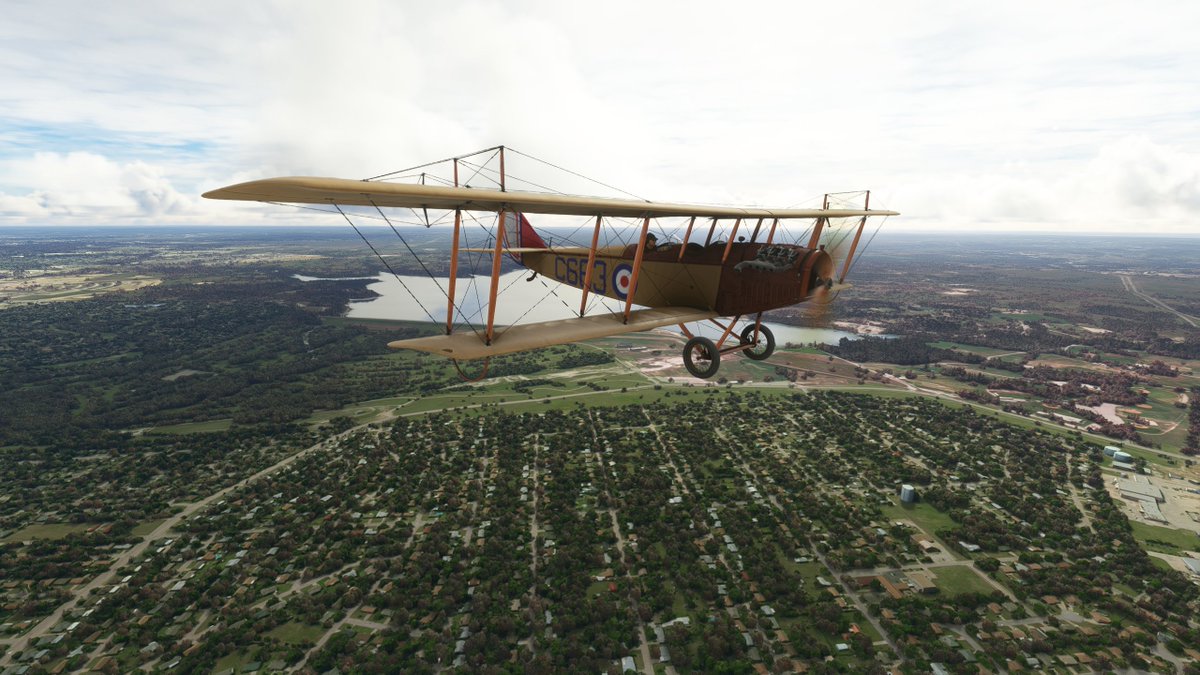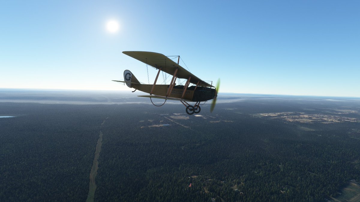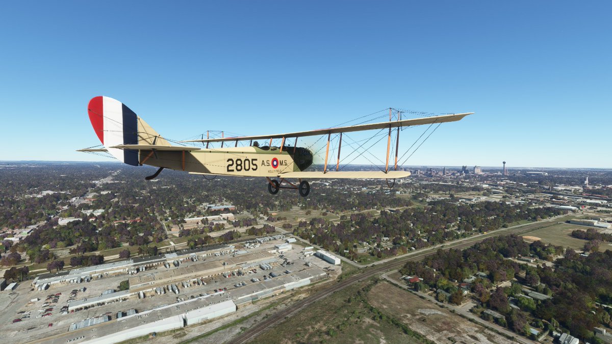 This JN-4 Canuck flew out of Bembrook Field. Like the other two, this airfields no longer exists, so I'm flying over the suburban residential area where it was once located.