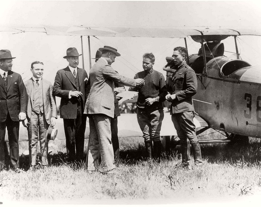 After a year training in Texas with the U.S. Army, Lindbergh reverted to the Reserves and took a job as an airmail pilot flying the route from St. Louis to Chicago (in his case flying war-surplus De Havilland DH-4 biplanes, rather than Jennies).