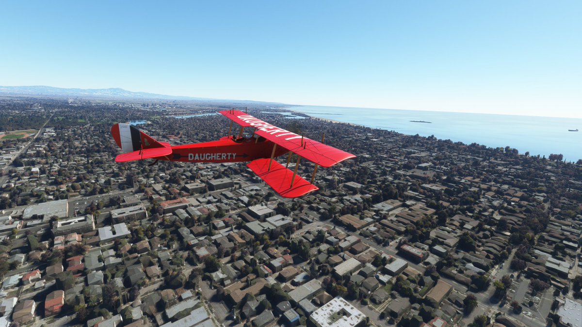I'm taking off from modern-day Long Beach Airport (KLGB), south of Los Angeles, because he actually founded the airport in 1919. Named Daugherty Field, it became the base for his aerobatic shows.