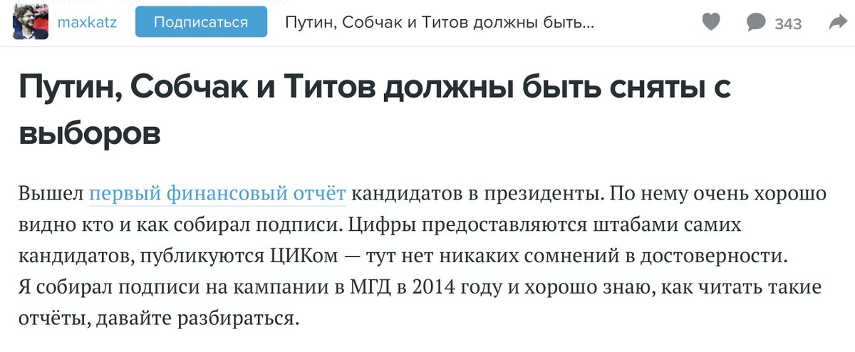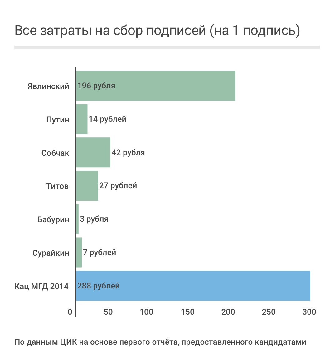 И ещё из ЖЖ-поста Каца следует, что он политический лошок. Стоимость (честно собранной по словам Каца!) подписи за Явлинского на президентских (!) выборах существенно ниже стоимости подписи за Каца (не забудьте ещё про инфляцию!)