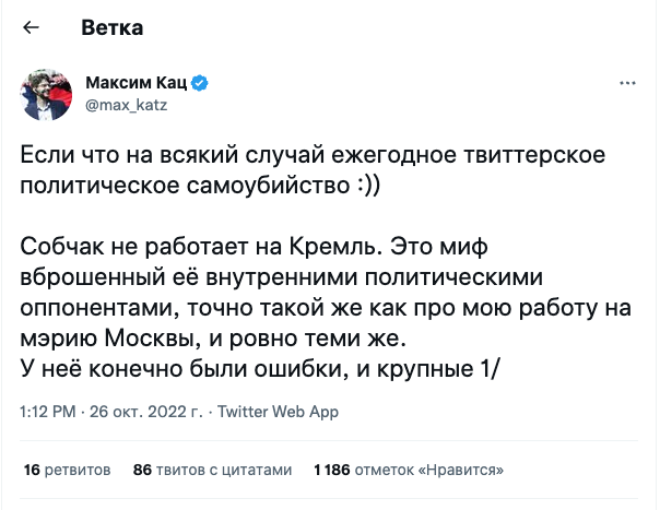 поддержал Собчак в кампанию 2018, не подал руку помощи (якобы) оппозиционному кандидату, а что же делал сам Кац?🧵