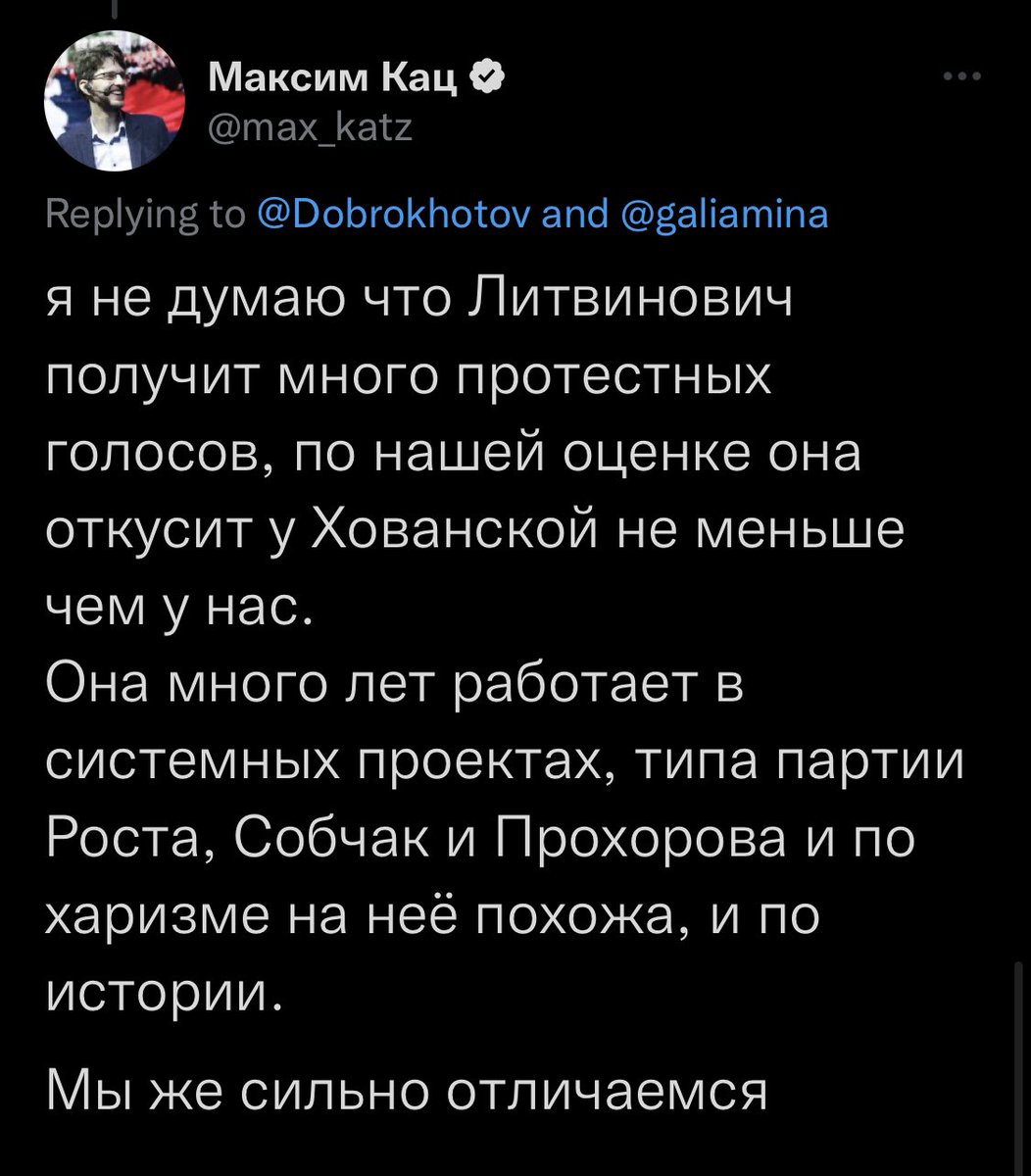 Под конец треда я постараюсь ответить на ожидаемую критику любителей Каца. Зачем в такое время критиковать Каца, который говорит правильные вещи? На выборах в Беларуси в 2020 Кац тоже говорил правильные вещи, но тем не менее — люди имеют право знать.