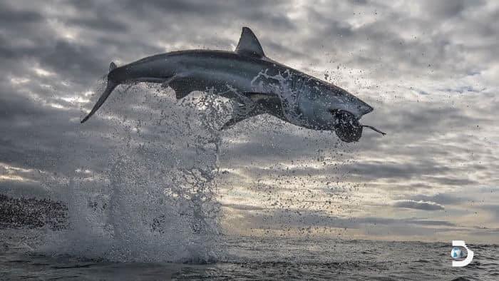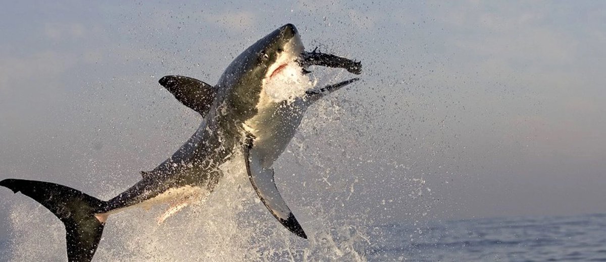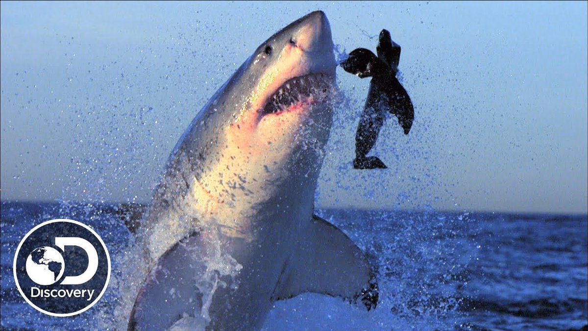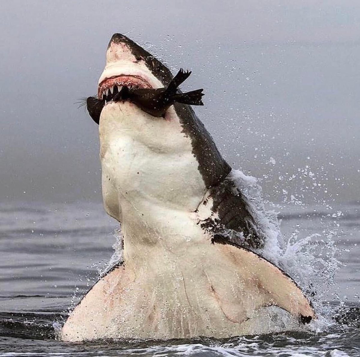 עמלץ לבן תוקף כלבי ים, מזונו העיקרי, בשיטה שנקראת- Breaching (״שבירה״ בתרגום חופשי, בשל שבירת פני המים).🔽
