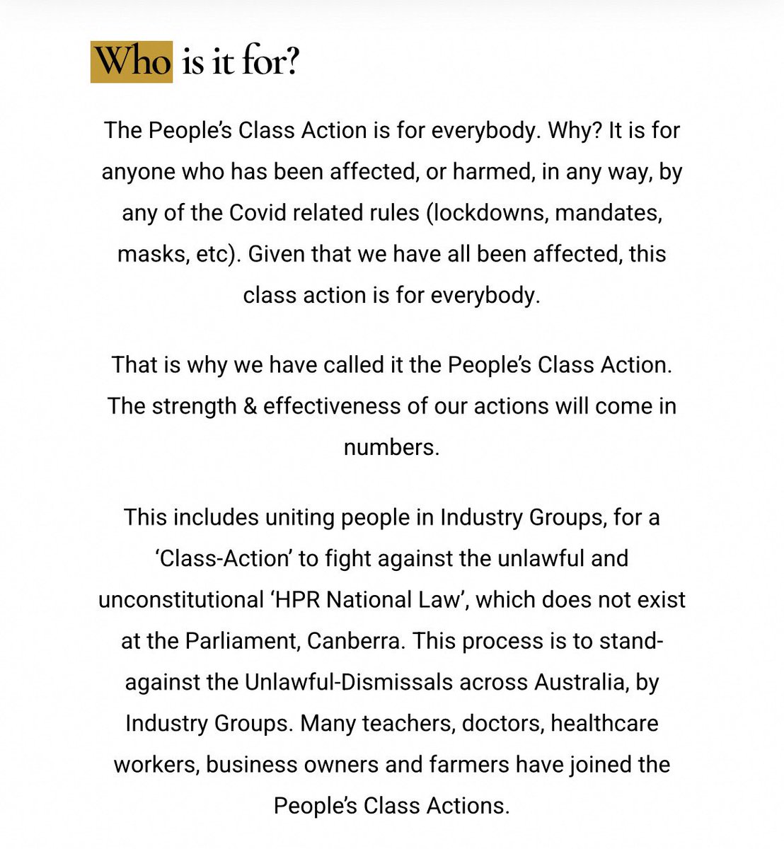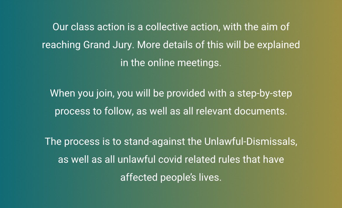 3. Derek is also planning a class action - the “Educate for Protection People’s Class Action”. It’s not entirely clear what the action is all about. Derek describes it as a “collective action, with the aim of reaching Grand Jury”
