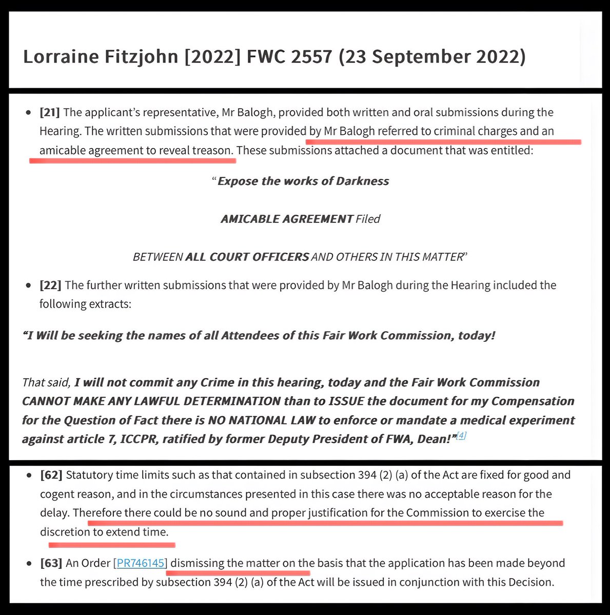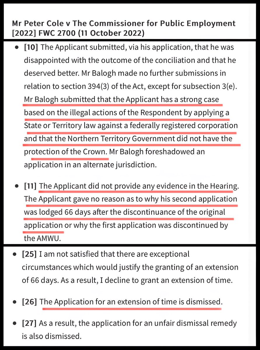 6. Derek claims he’s had lots of success with his pseudo law strategies both in the courts & in Fair Work. NOTHING COULD BE FURTHER FROM THE TRUTH!