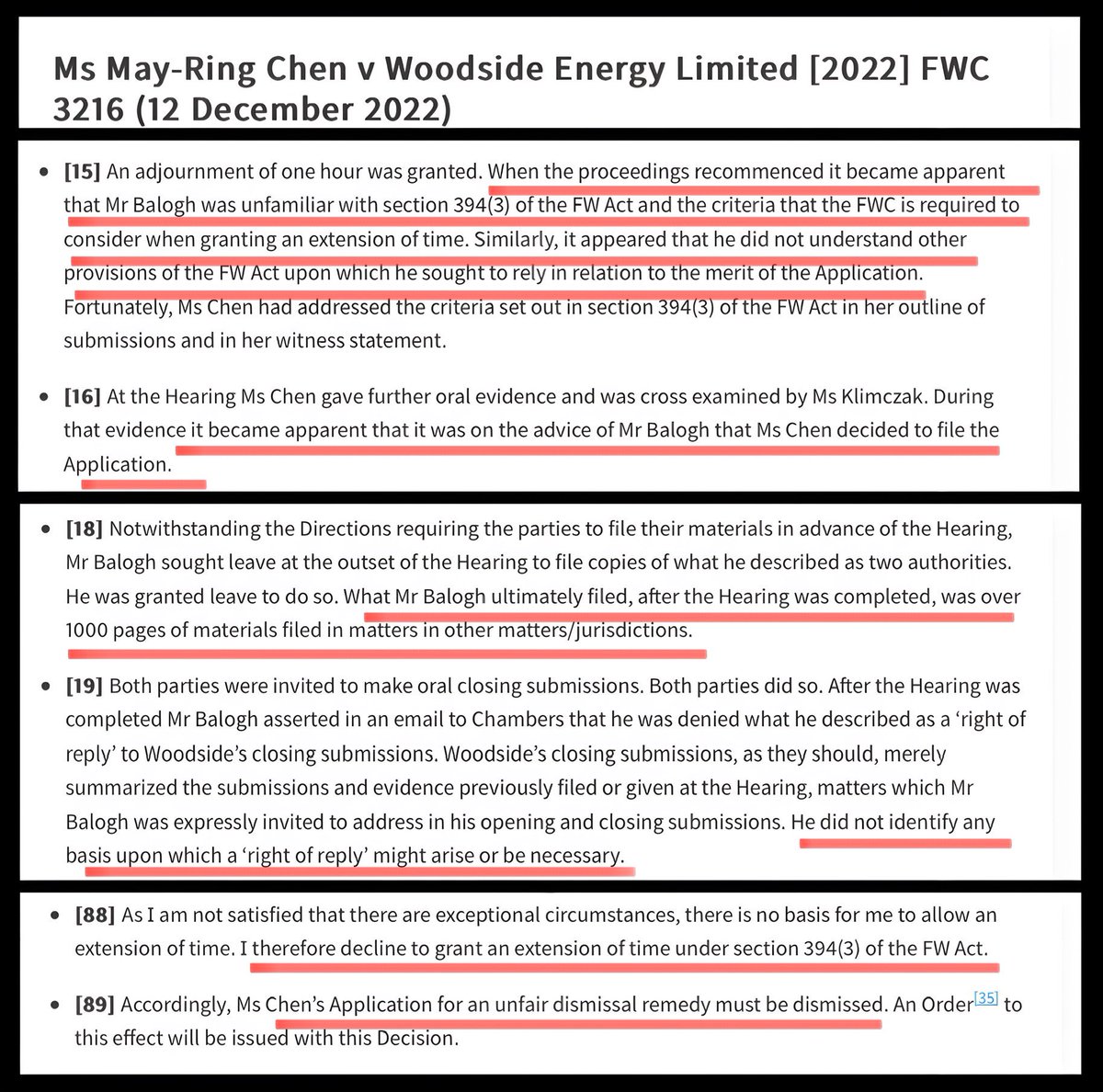 7. In the above video, Derek says what he does best is fight in the Fair Work Commission. HE’S LOST EVERY SINGLE CASE! His arguments are completely baffling & incomprehensible. In a recent case, FWC said he “didn’t understand provisions of the Act upon which he sought to rely”