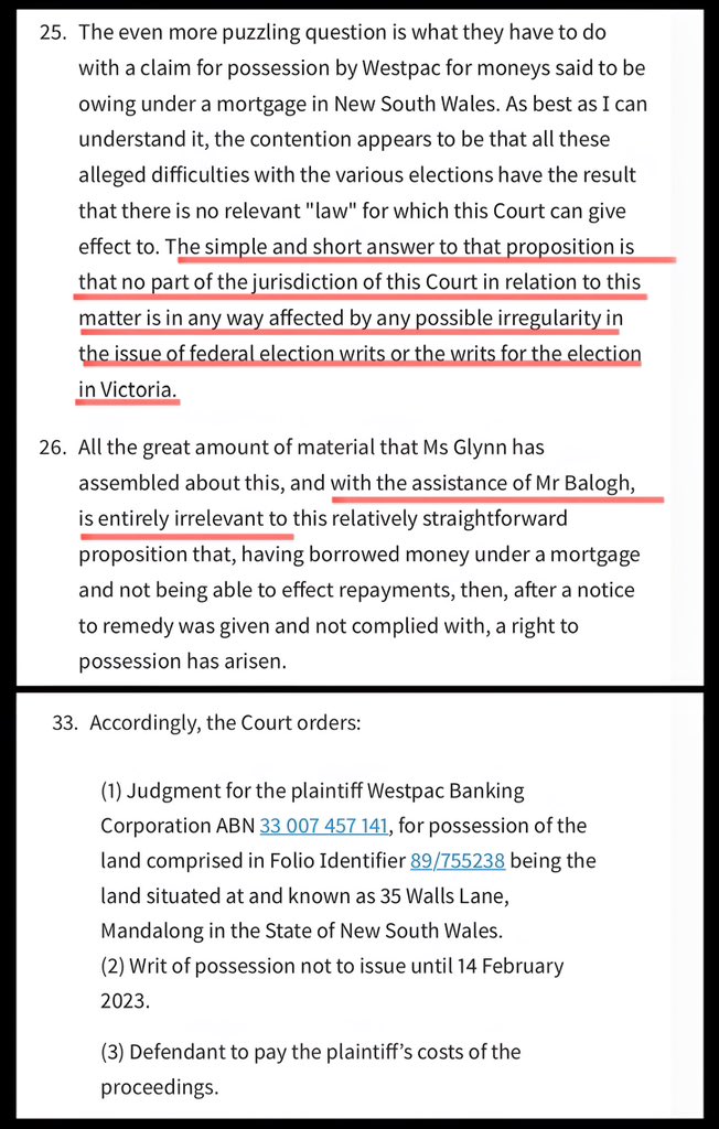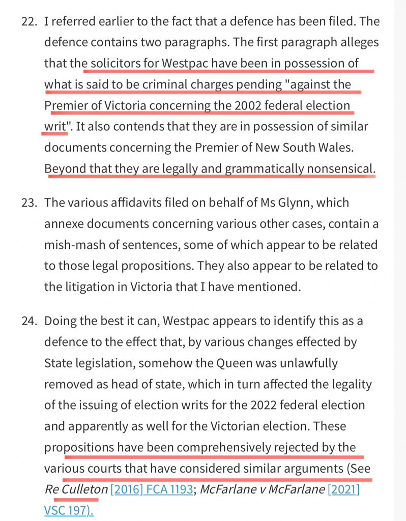 10. The “defence” was: the Queen was unlawfully removed as head of state, rendering the federal & Vic elections invalid & therefore the Court lacks jurisdiction to grant the bank’s claim. Derek’s “client” lost & was also ordered to pay costs