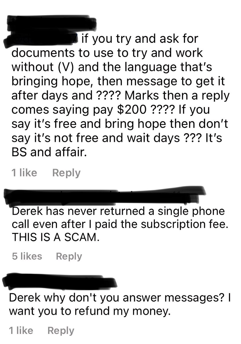 14. There are MANY complaints about Derek online. Ppl who paid to be part of his workshops or paid him for “legal advice” & then never heard back. Stories of victims who lost their homes after relying on his advice