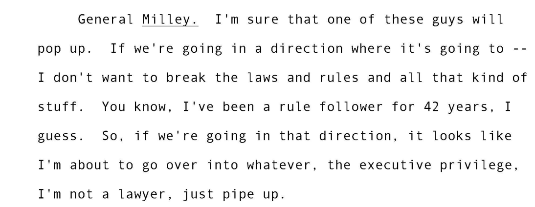 Reviewing Mark Milley's J6 transcript and I'm pretty sure there's no one more insufferable: