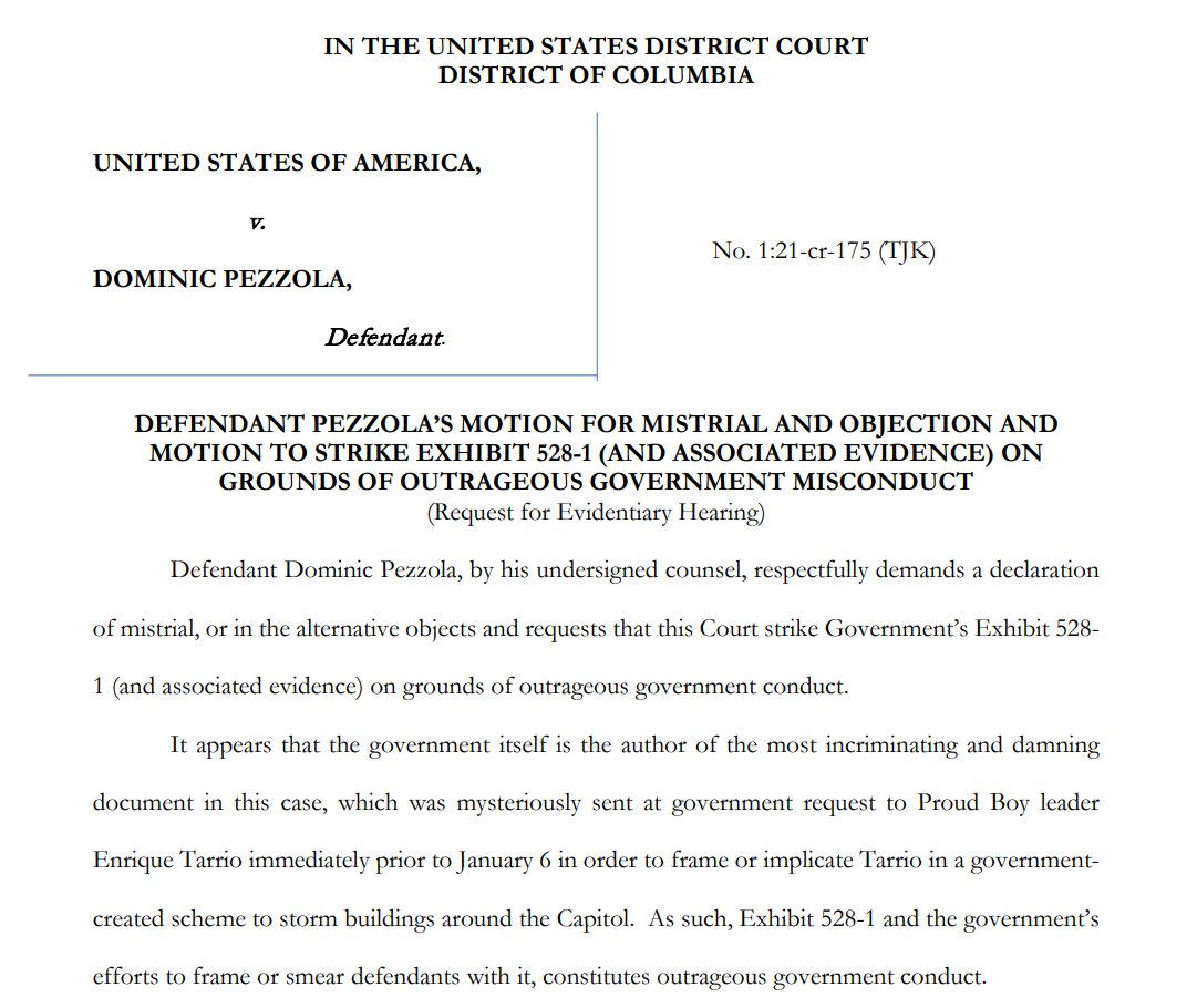 Defense accuses Biden DOJ of "outrageous government misconduct" for withholding critical information related to a document central to DOJ case against 5 accused of "seditious conspiracy."