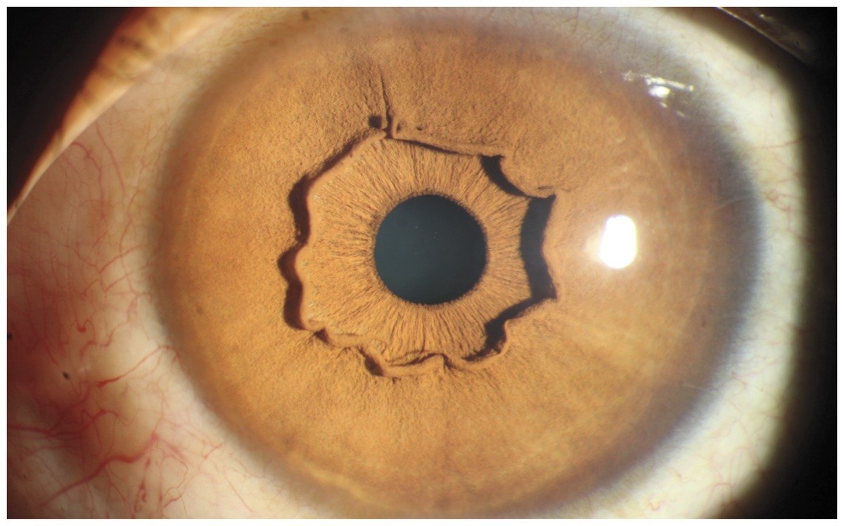 The iris collarette is a landmark that separates the central pupillary zone from the peripheral ciliary zone.