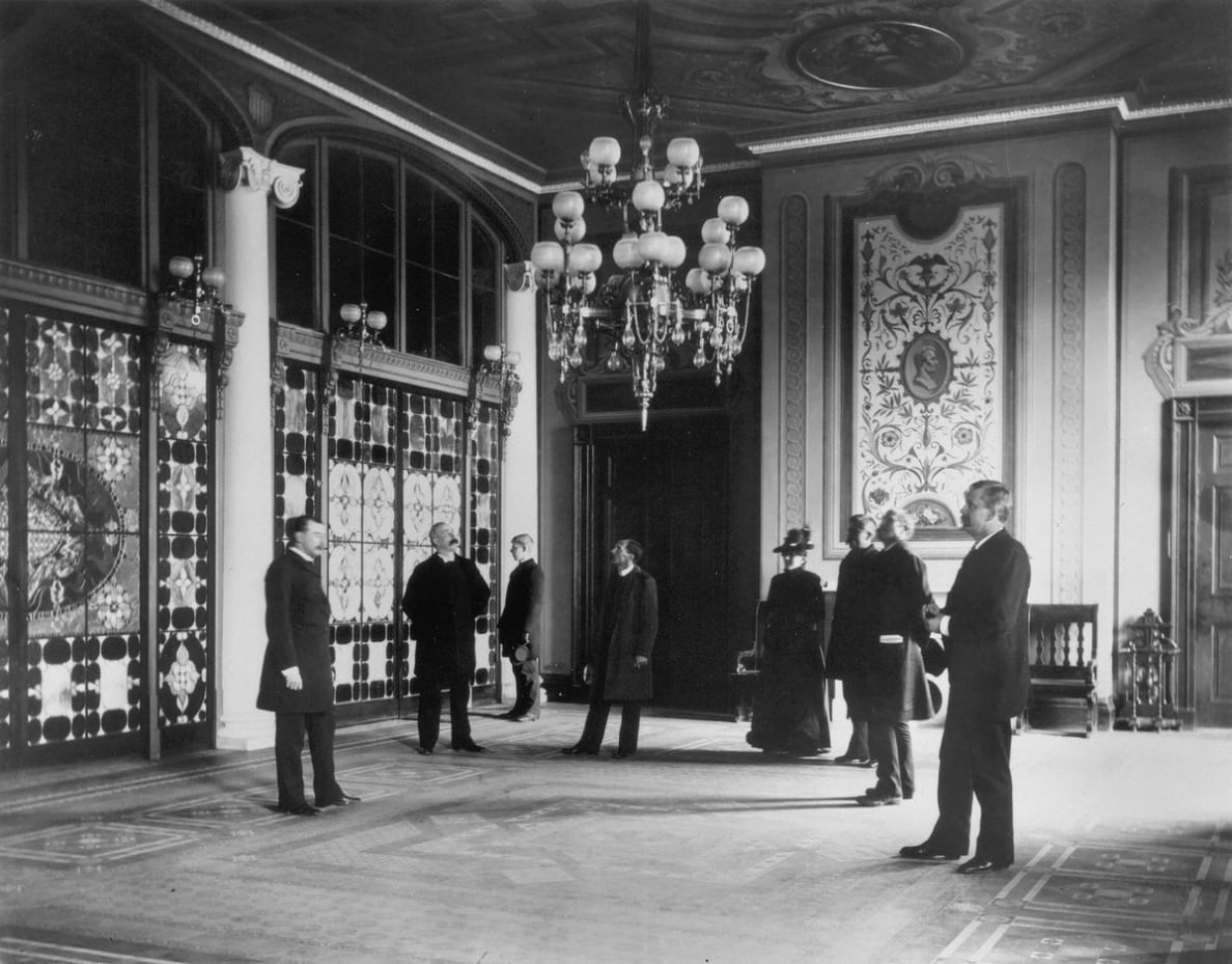 little known fact in american aesthetic history is that louis comfort tiffany was commissioned, in the late 1800s, to do work for the whitehouse - on the entrance hall and the 'blue room'.