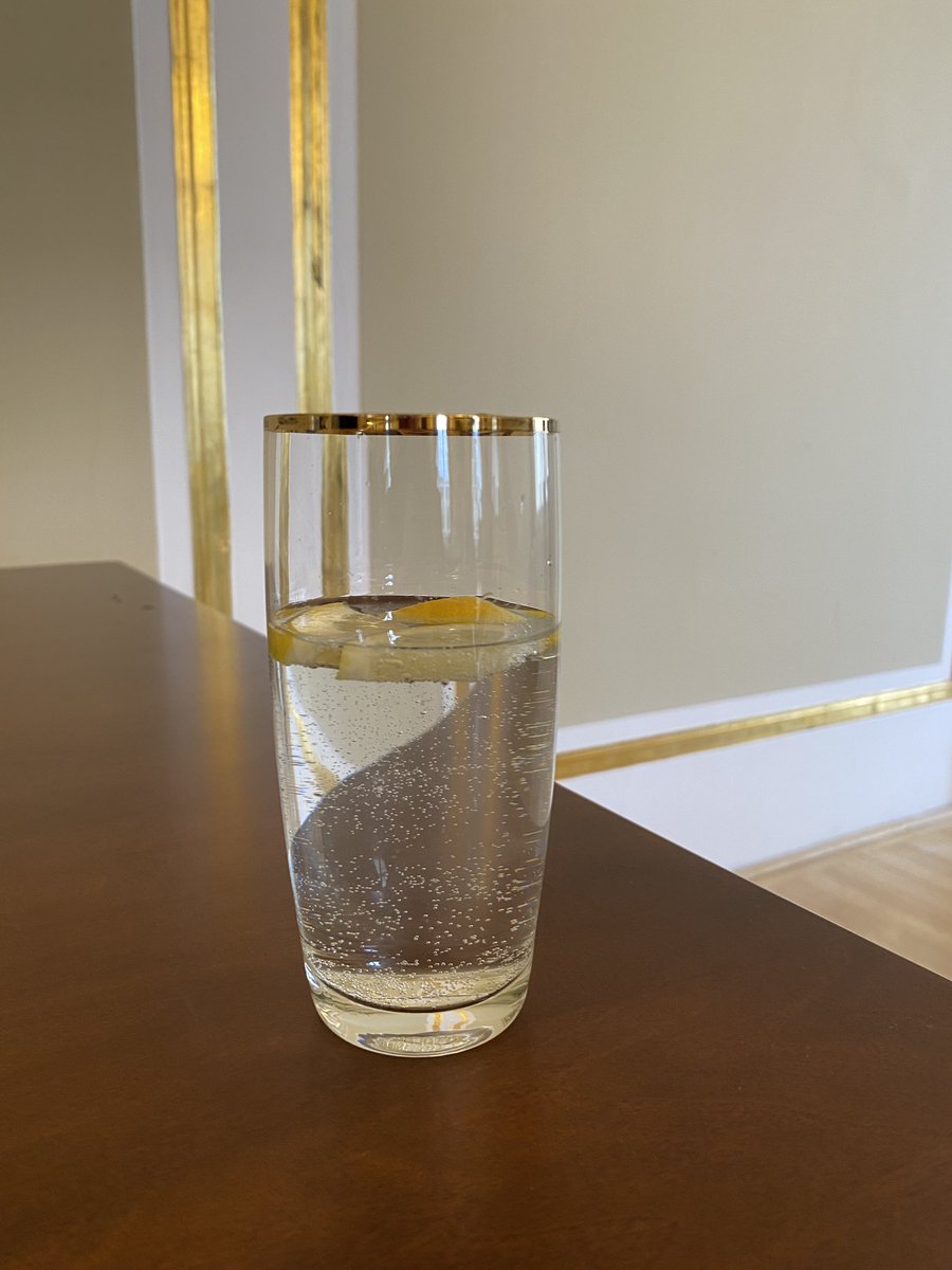 Zatím piji vodu s citronem, jogíni tomu říkají pure fuel. Mě spíš zaujalo, že máme k dispozici luxusní hradní skleničky se zlatým lemem, které doprovází Miloše Zemana oběma obdobími. Poslední dobou tam měl hnědou tekutinu. Já si myslel, že to byl Fernet, ale prý to byla Cola.