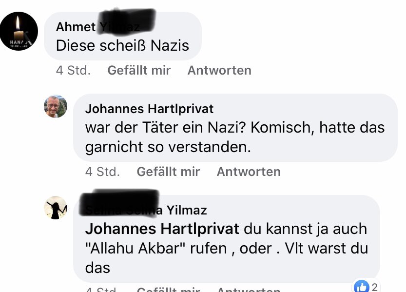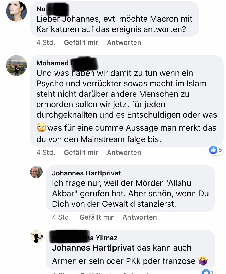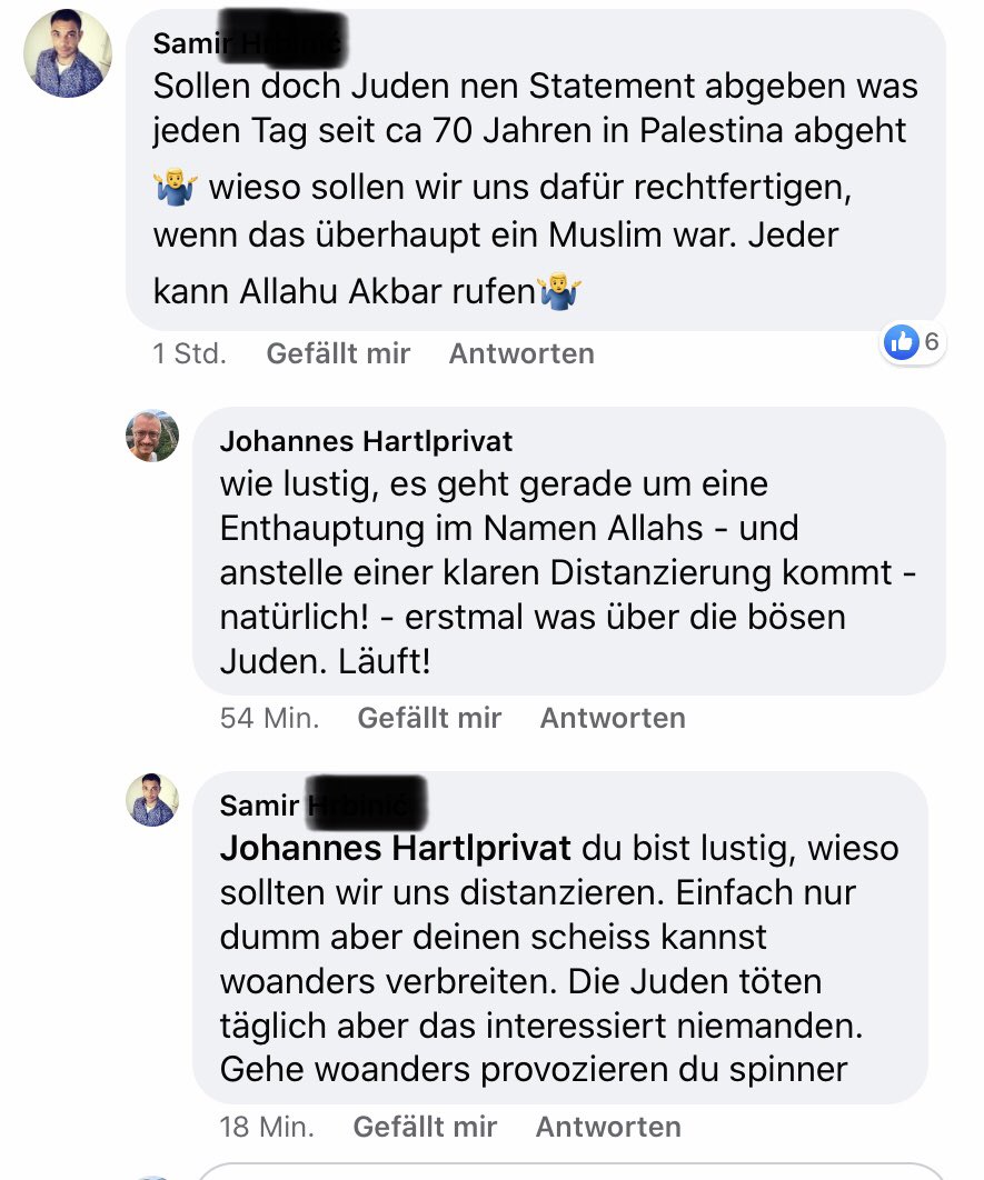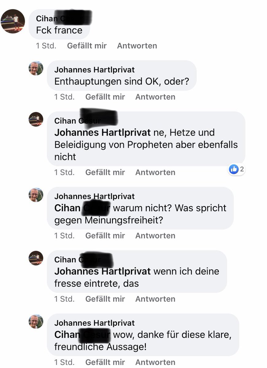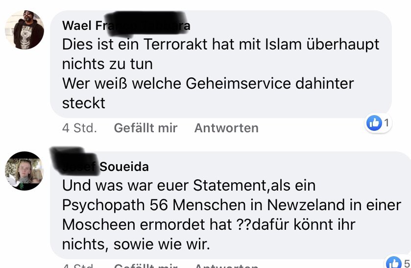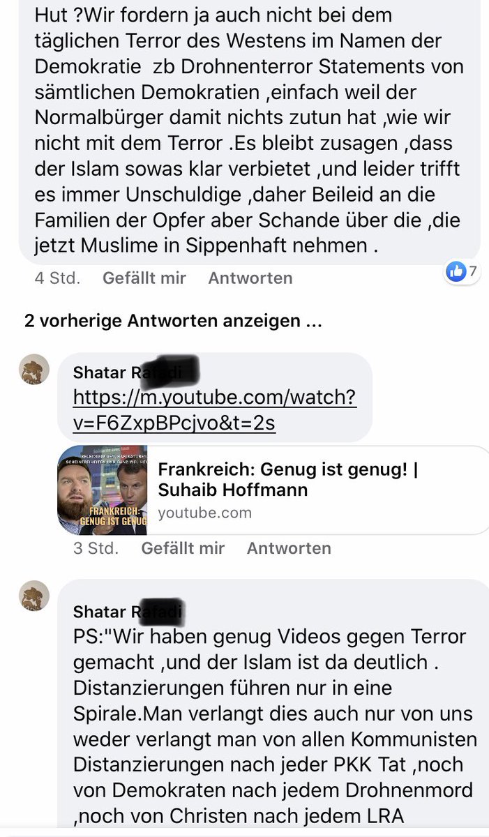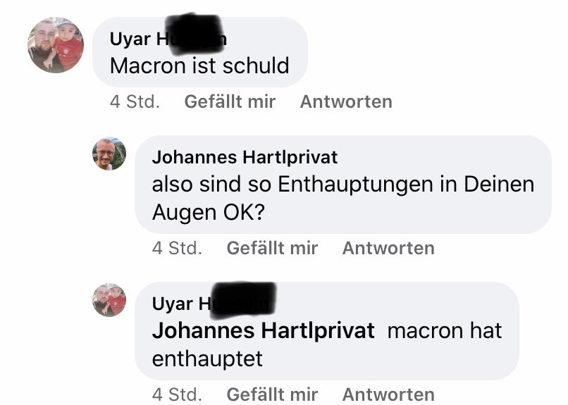 Auf Facebook gibt es eine Gruppe zum friedlichen Austausch zwischen Religionen. Ich hab da gefragt, ob jemand ein Statement zu den Enthauptungen in Frankreich geben möchte. Mit solchen Reaktionen hatte ich nicht gerechnet... Bin sehr erschüttert und traurig. We have a problem.