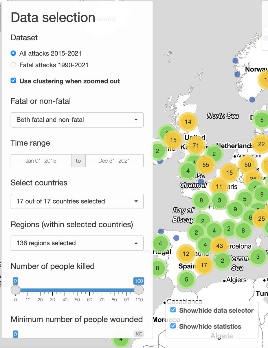 Today @CrexUiO launches the RTV Map Tool. This #openaccess tool provides detailed information, incl. geolocation, on right-wing violent attacks in Western Europe since 1990. A thread 1/10 sv.c-rex.uio.no/RTVMapTool/