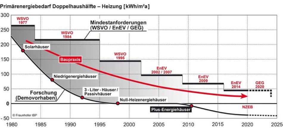 Seit den 1970er Jahren (erste Energiekrise) gibt es am Bau alle paar Jahre eine Verschärfung zu Dämmung und Beheizung, um die Gebäude immer klimaneutraler sowie vor allem die Warmmieten gering zu halten.