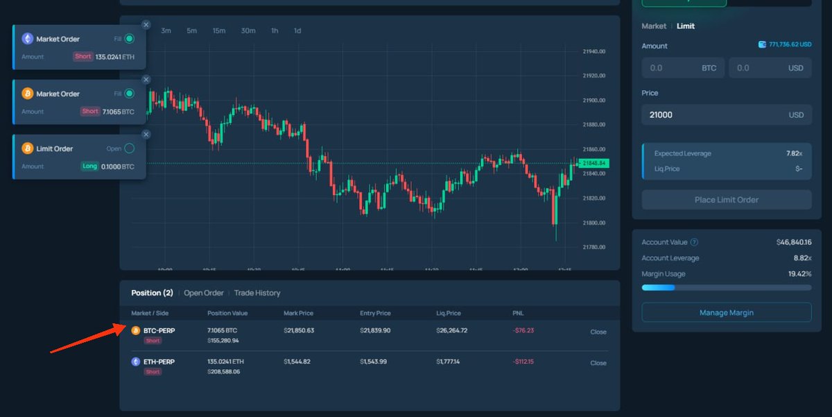 ๐ Open some Long and Short positions on $ETH & $BTC, choose leverage you want โ