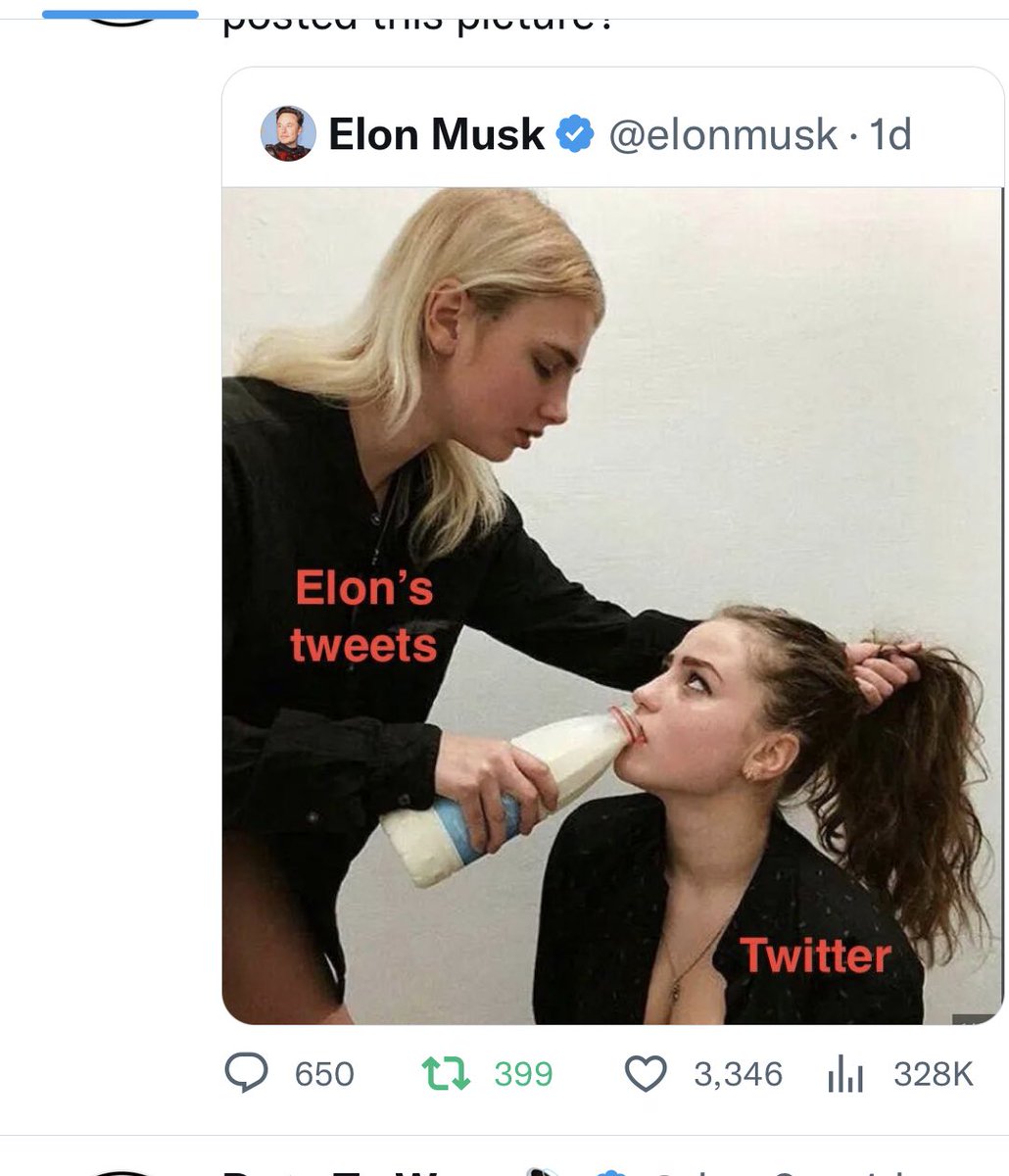 Now this insane Tweet from yesterday makes more sense. Musk want to sexually assault us virtually by force feeding his tweets into our feeds without our consent.