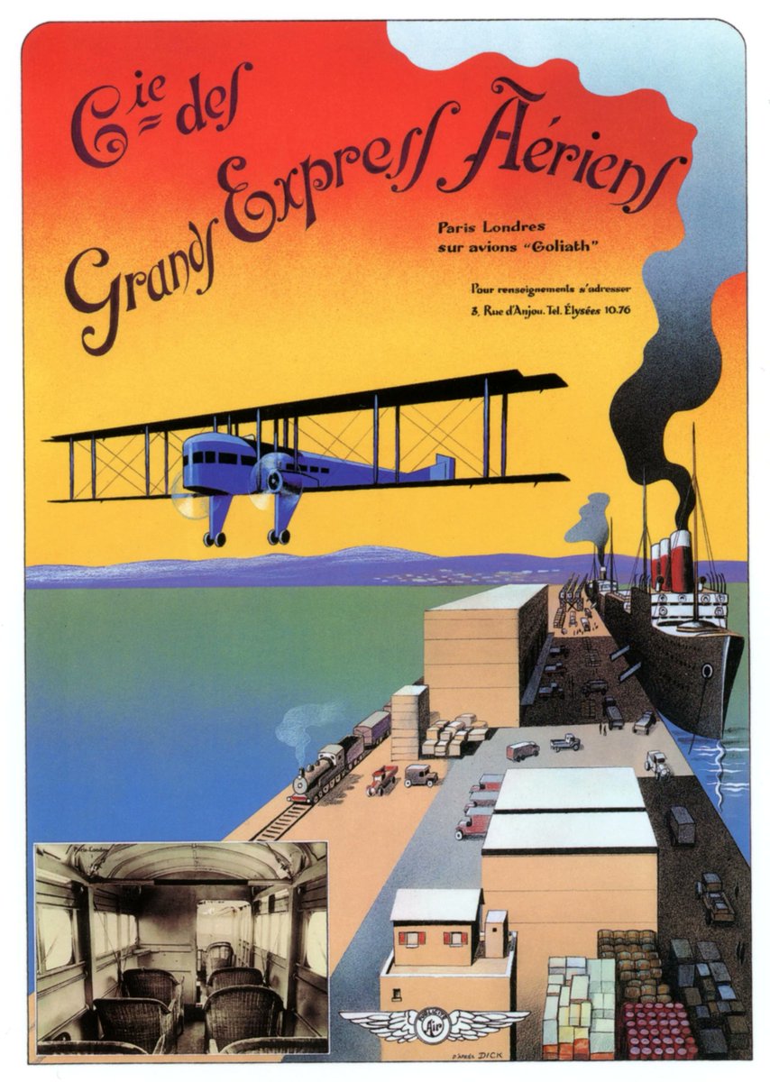 By 1920, a new airline, the Compagnie des Grands Express Aériens (CGEA), acquired several Goliaths and began offering scheduled flights - for civilians now - from Le Bourget airfield outside of Paris to Croydon airfield near London.