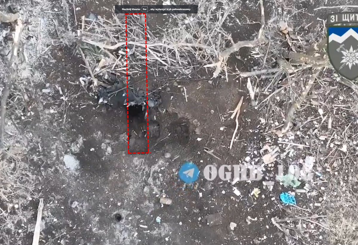 N-ty film, gdzie ukraiński dron zrzuca granat do okopu z Rosjanami.