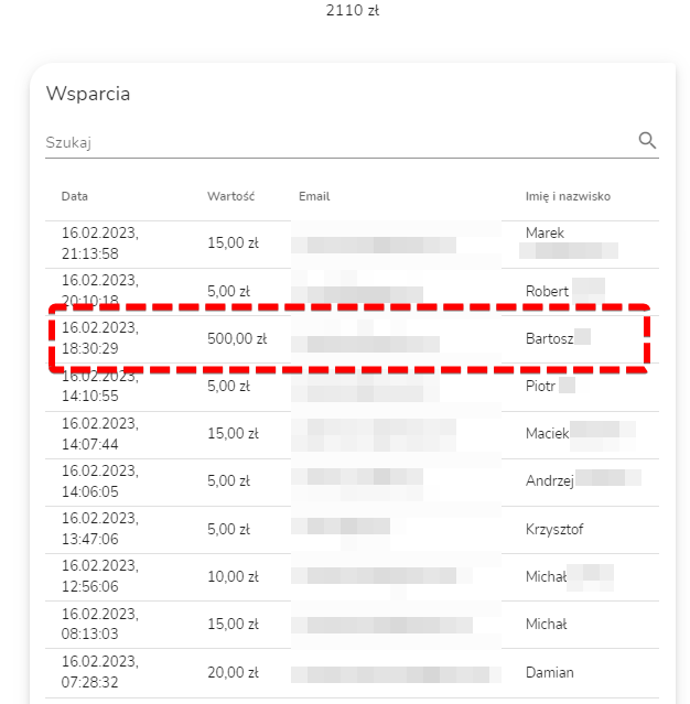 I podziękowania dla osób z listy