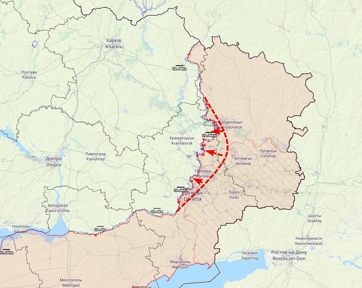 3/4 Najbardziej ucieszyłbym się z problemów z rosyjskimi zapasami, ale zwyczajna niewydolność logistyki wydaje się najbardziej sensownym wytłumaczeniem. Jedynym kierunkiem, gdzie Rosjanie prowadzą szturmy to Donbas, bo to jedyny obszar, gdzie mają logistykę zbudowaną od 2014 r.