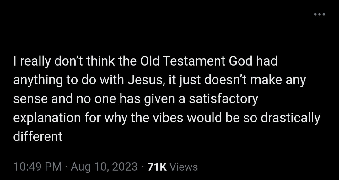 I am trying to minimize the attention given to this account but this constant "Why God mean & Jesus nice" is such an easily avoided take derived from lack of thought. You just had to not zone out while the Jesus storybook Bible was being read to them as a child :