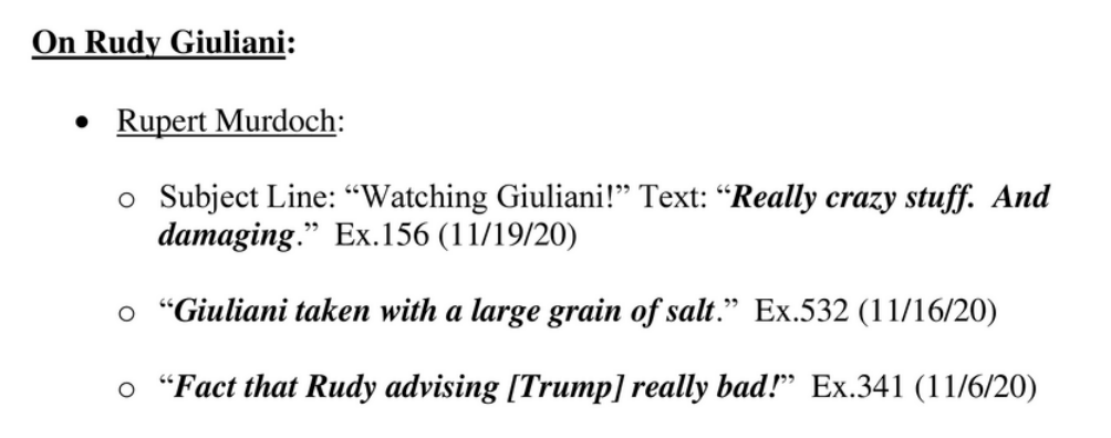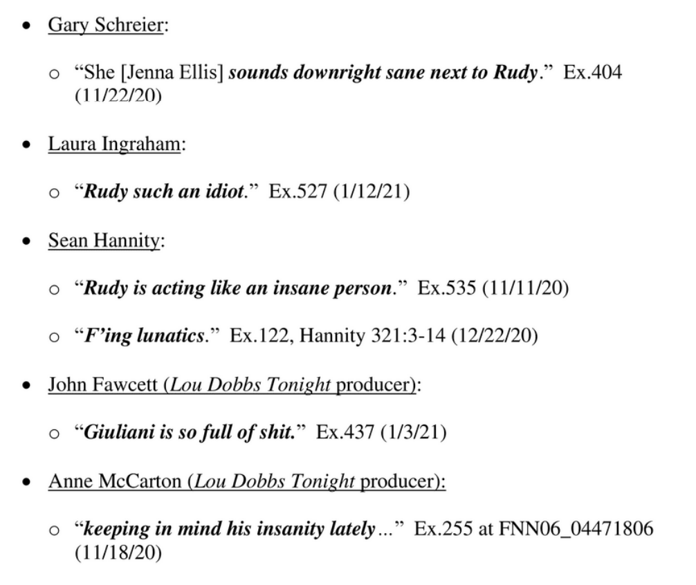 The Fox messages reveal Fox brass and top hosts tearing into Rudy Giuliani.
