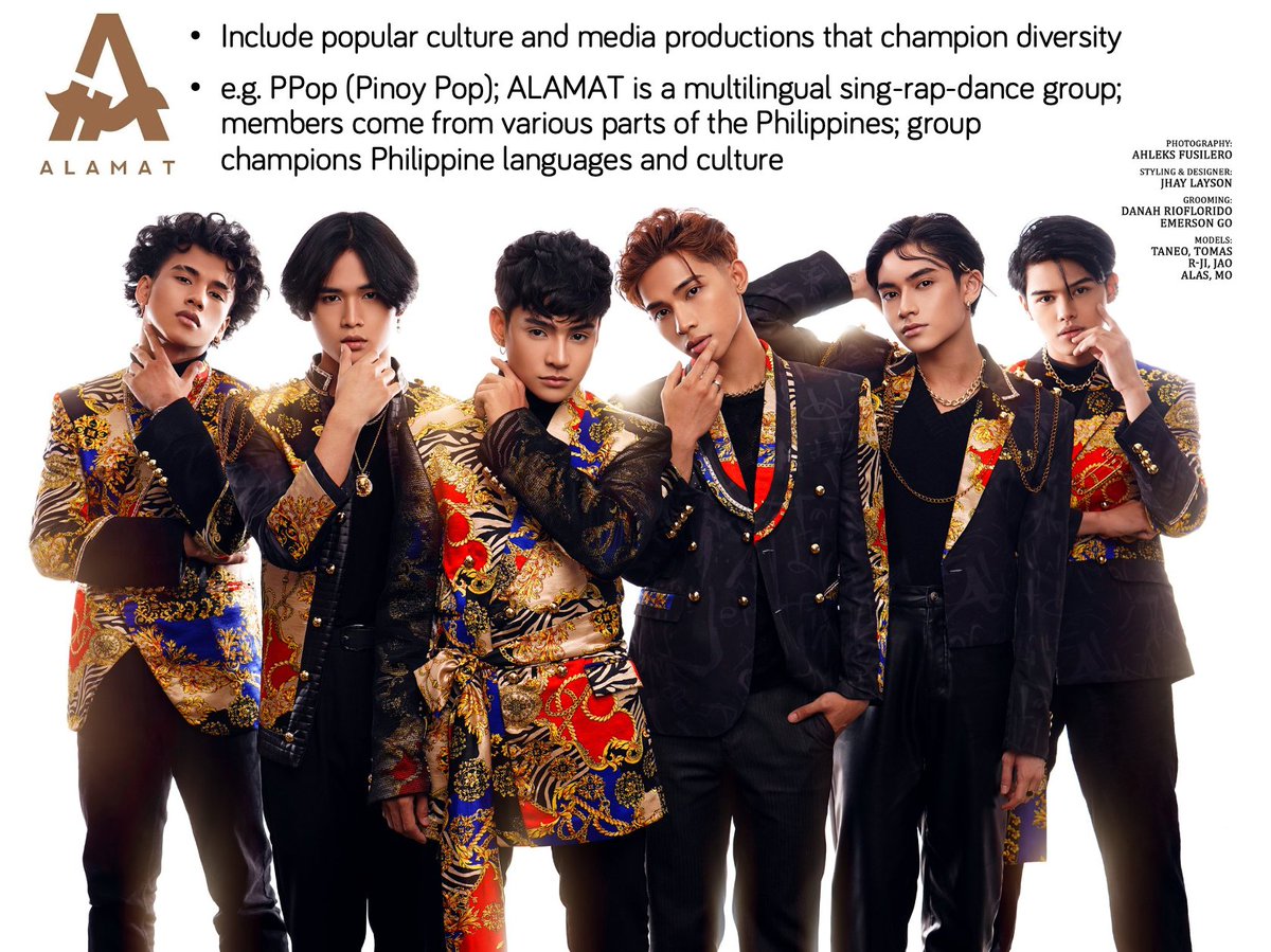 .@Official_ALAMAT champions Filipino languages & culture; incorporating diversity, historical & societal consciousness in their songs, music vids, fashion etc.