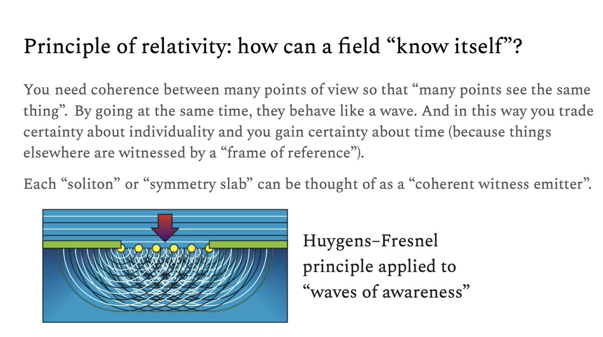 Under LSD, symmetrification of self within a pocket collapses multiple points of view, leading to a collective wavefront. Points within the pocket sense the field and advance as a collective wavefront, blurring the line between a point and a wave.