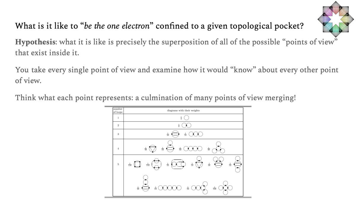 The experience of being the one electron in the topological pocket is precisely the superposition of all possible points of view that exist within it. It aligns with what mystics have talked about for a long time - the screen of consciousness is not fundamental but emergent.