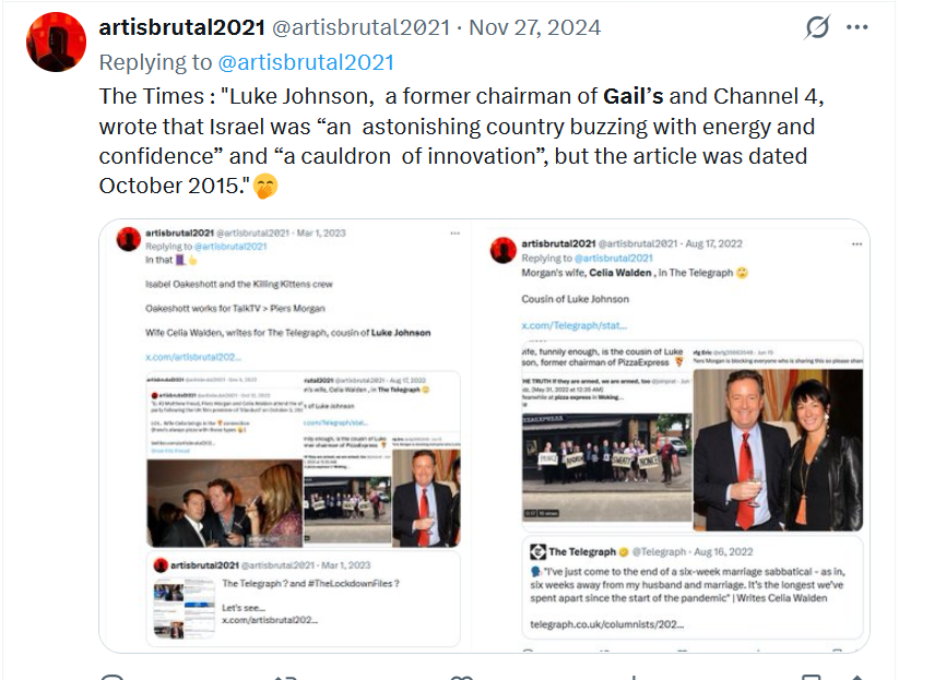 Ms Badenoch has now waded in on the debate, telling the Jewish News it is 'extraordinary that Gail’s bakeries are being attacked now, supposedly because they are Israeli-owned'."..