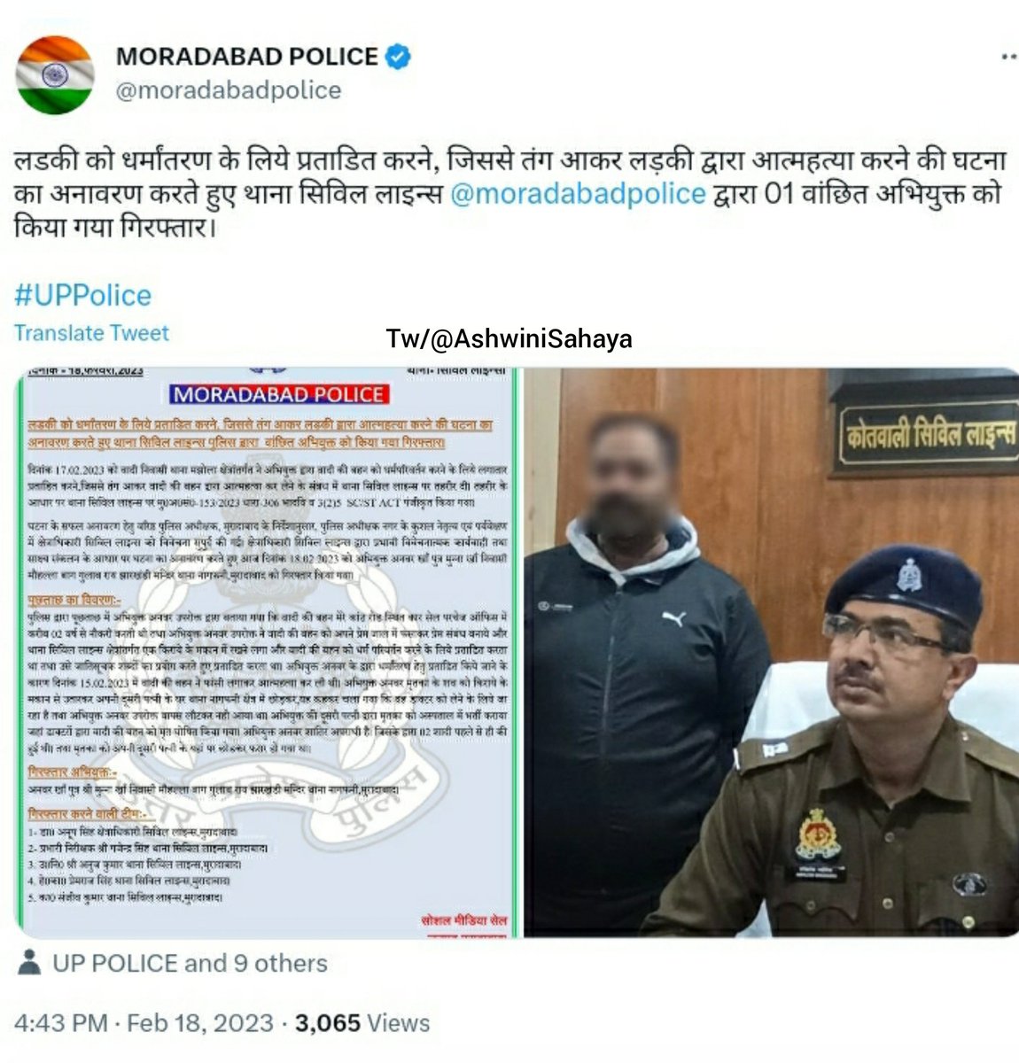 Mohammad Akhlaq & his father Mohammad Moin arrested on 15 February 2023 Under the charges of Rape, Assault, threatening/blackmailing for forceful conversion